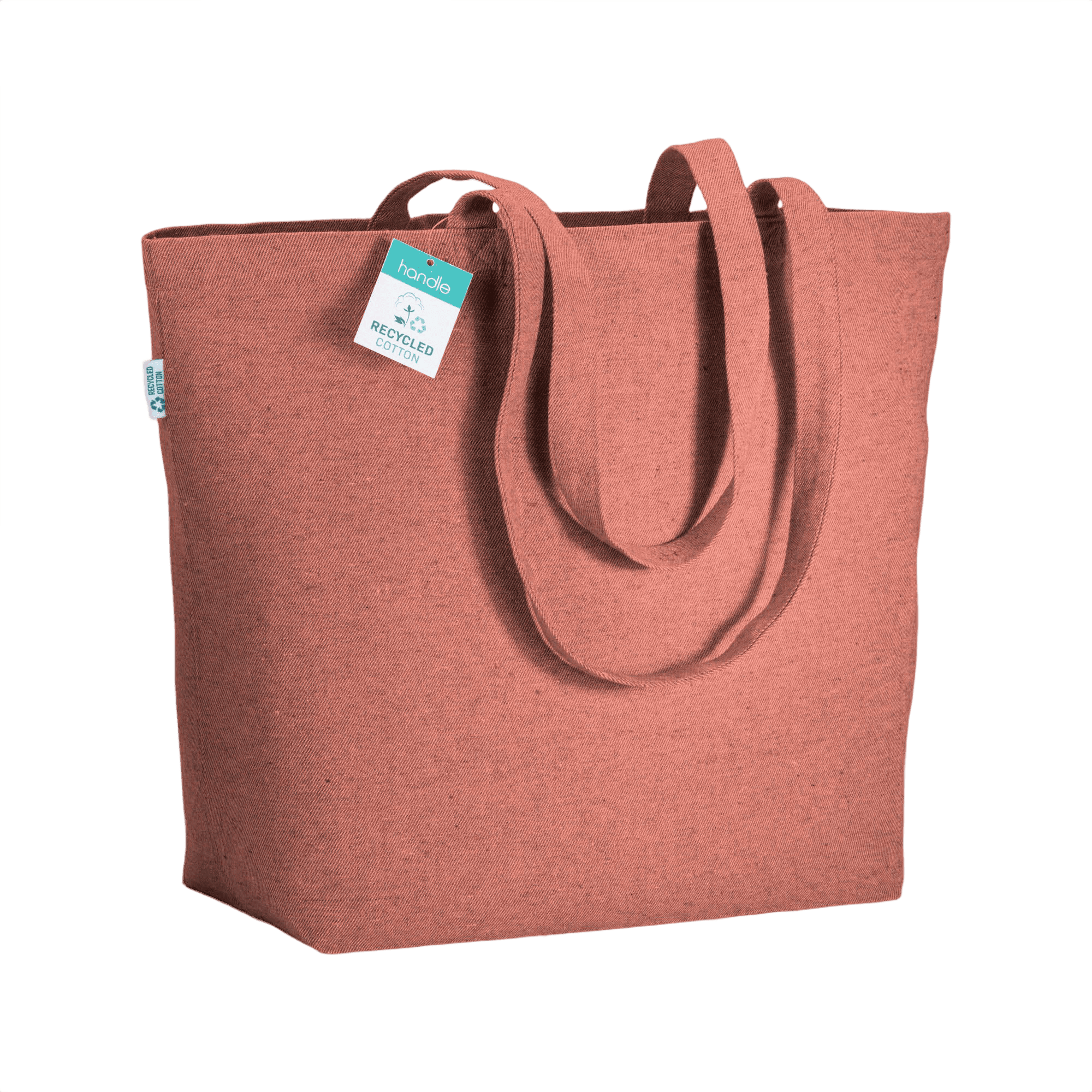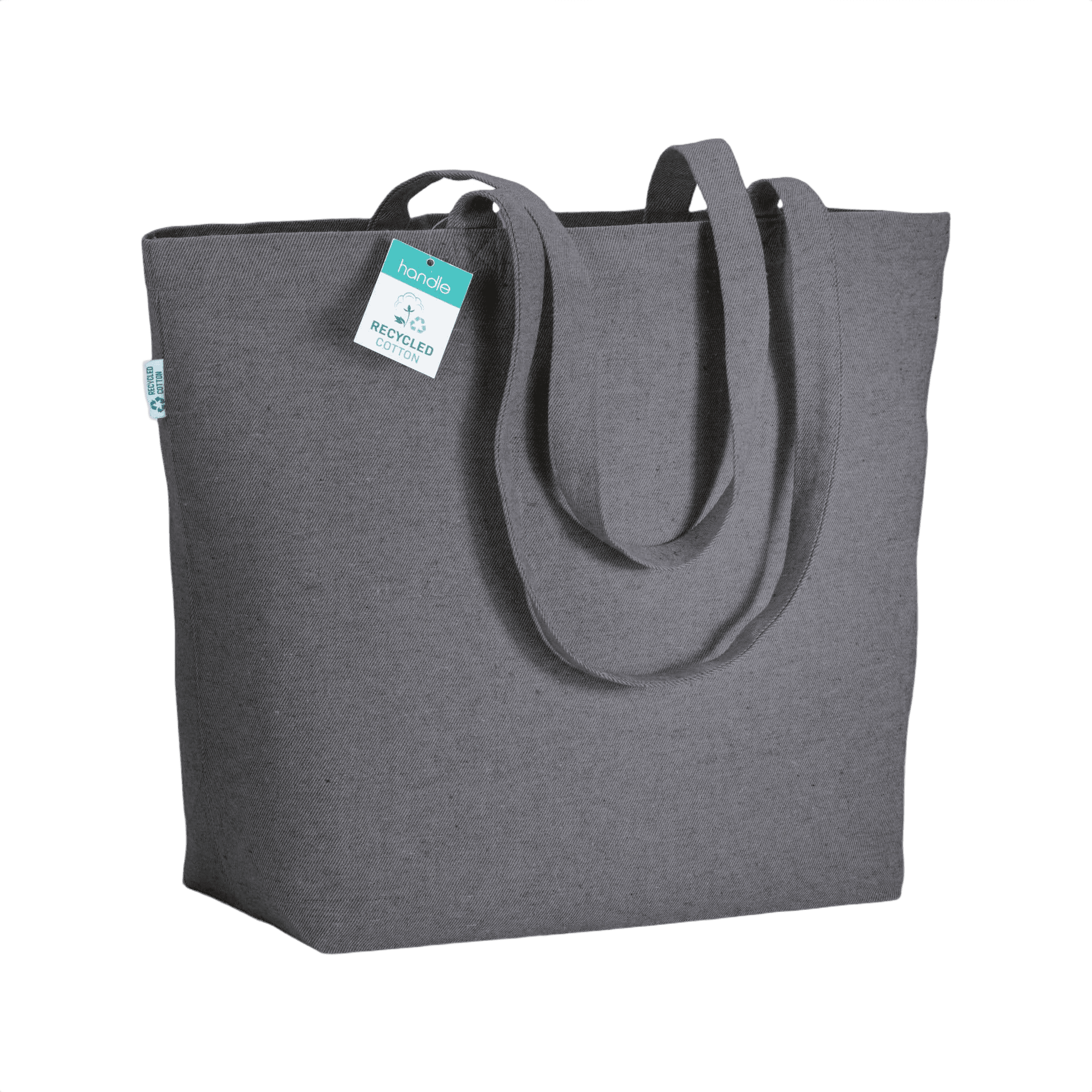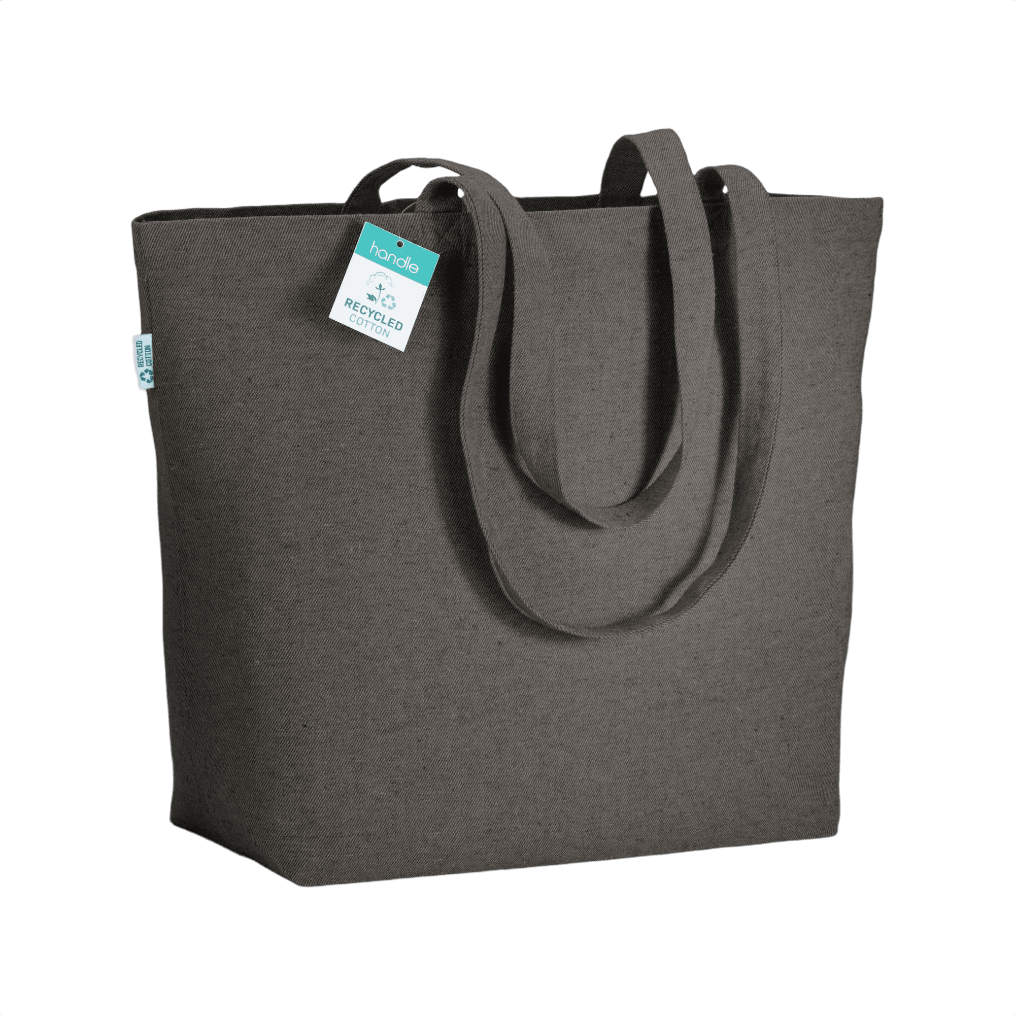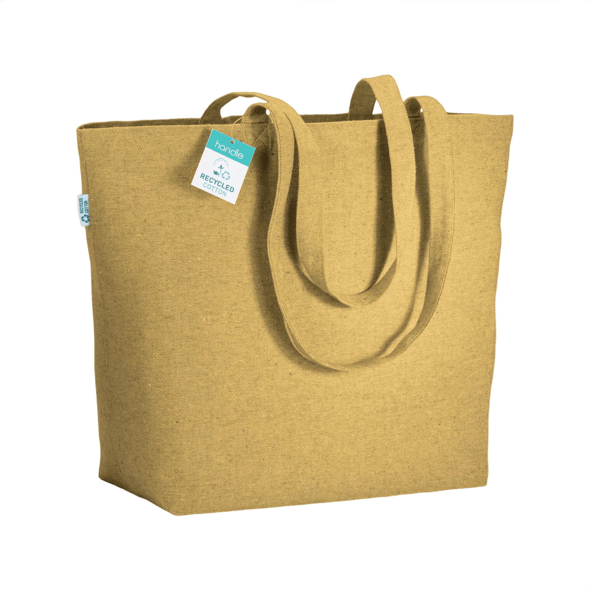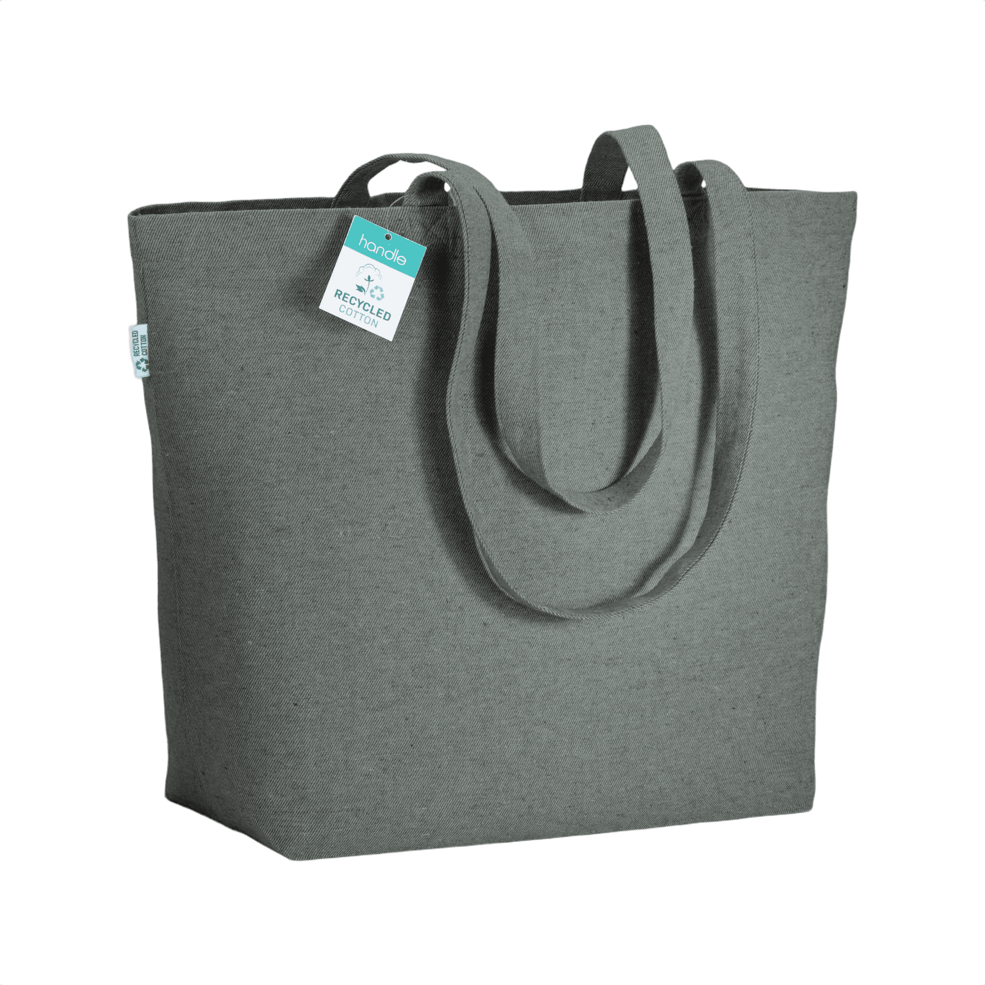 Kestävä ostoskaveri, tämä laukku on valmistettu kierrätetystä puuvillasta. Pitkät kahvat ja pohjalevennys yhdistävät käytännöllisen suunnittelun ja kestävät käytännöt. Viimeistele laukku brändilläsi ympäristöystävällisenä lisäyksenä tuotevalikoimaasi.