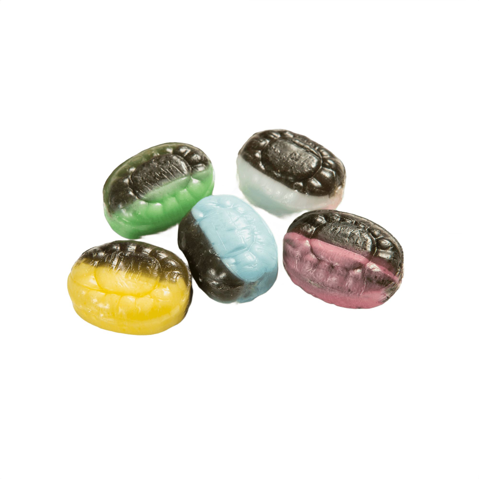 Godisarna är inslagna i komposterbart papper och tryckta med vattenbaserade färger, vilket framhäver deras hållbara förpackning.