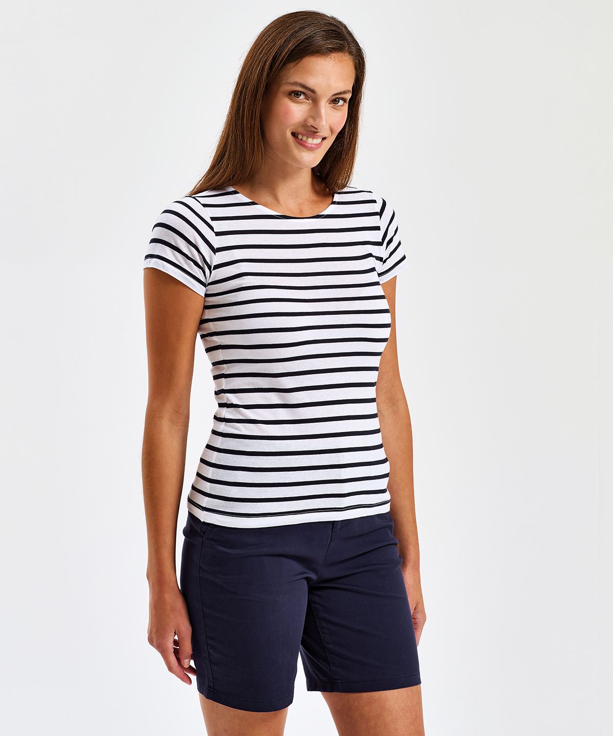 Den kortärmade marinière-kusttraljan för in en tidlös design i moderna garderober. Perfekt för olika tillfällen, dess stil är enkel men slagkraftig. Ett elegant basplagg för varje kvinnas samling, som ger en touch av kust till vardagen. Gör den unik med ditt varumärkes logotyp eller dekor.
