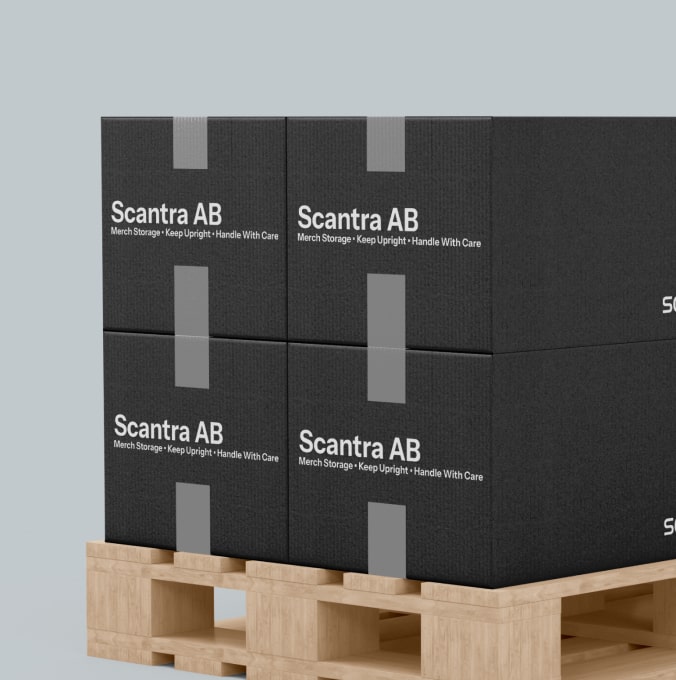 Varje artikel i shoppen är fullt profilerad enligt er visuella identitet, förberedd med korrekta tryckfiler, färger och dekorationsmetoder och lagrad i Scantras lager.