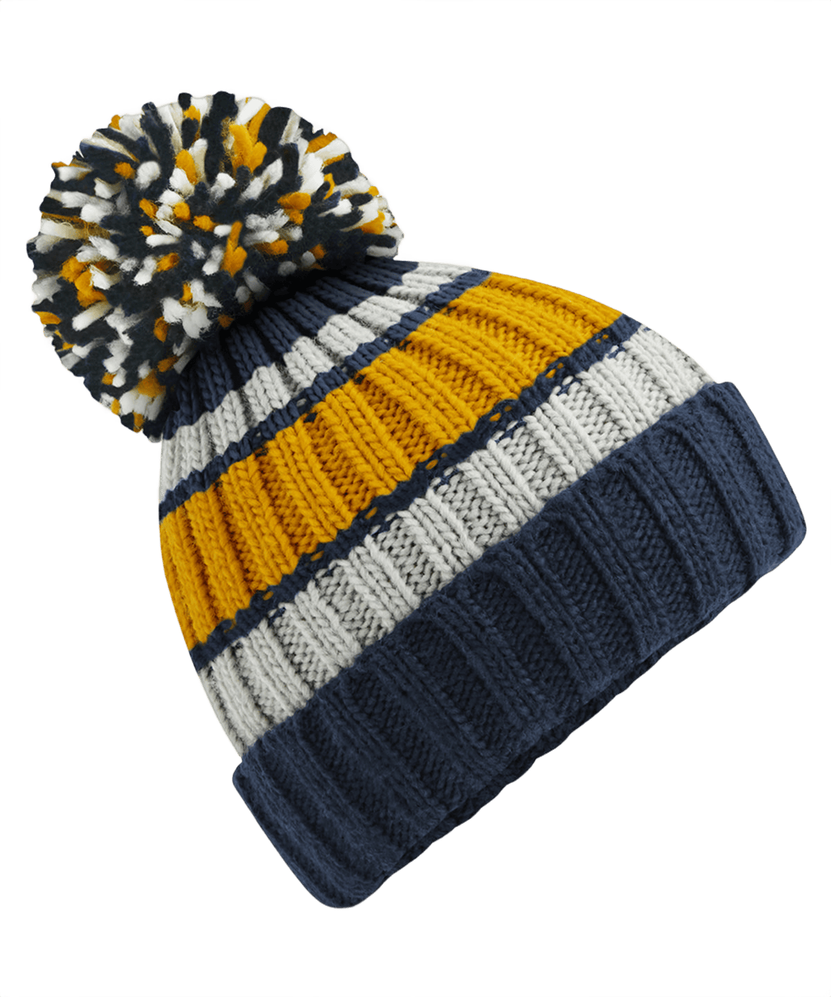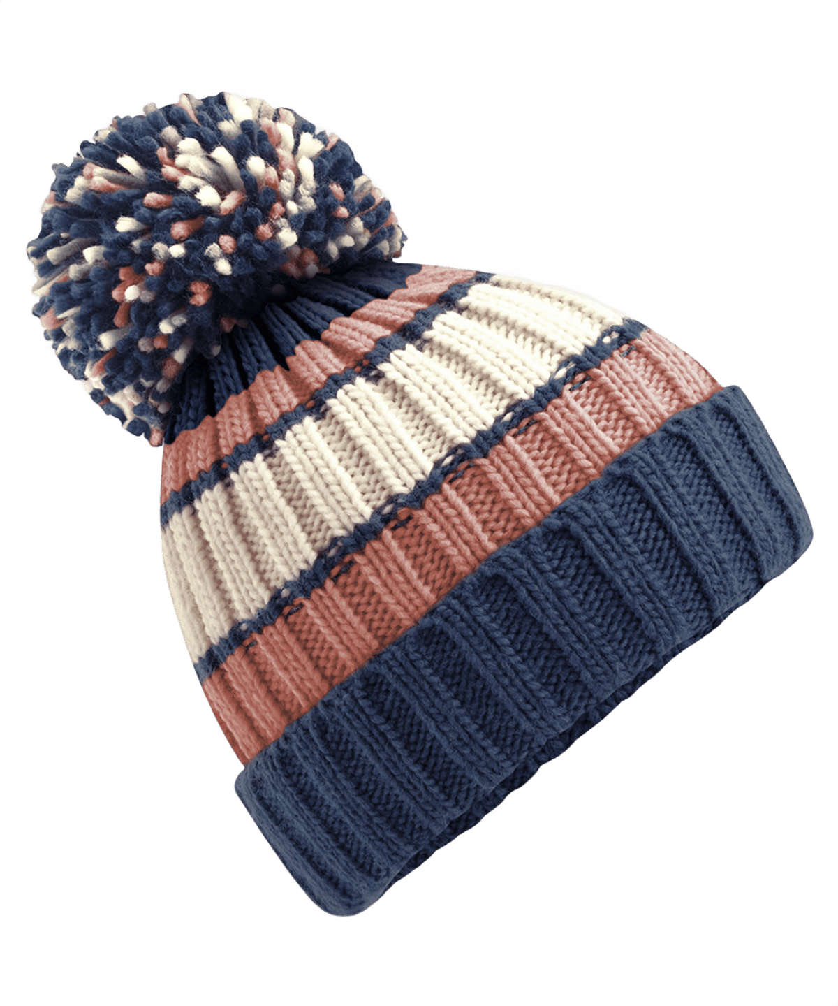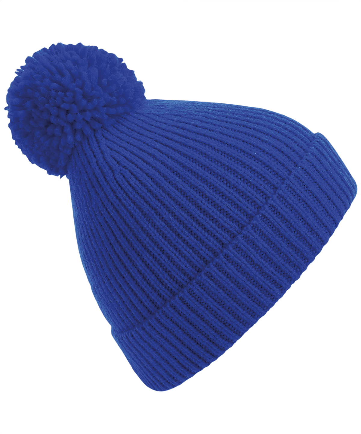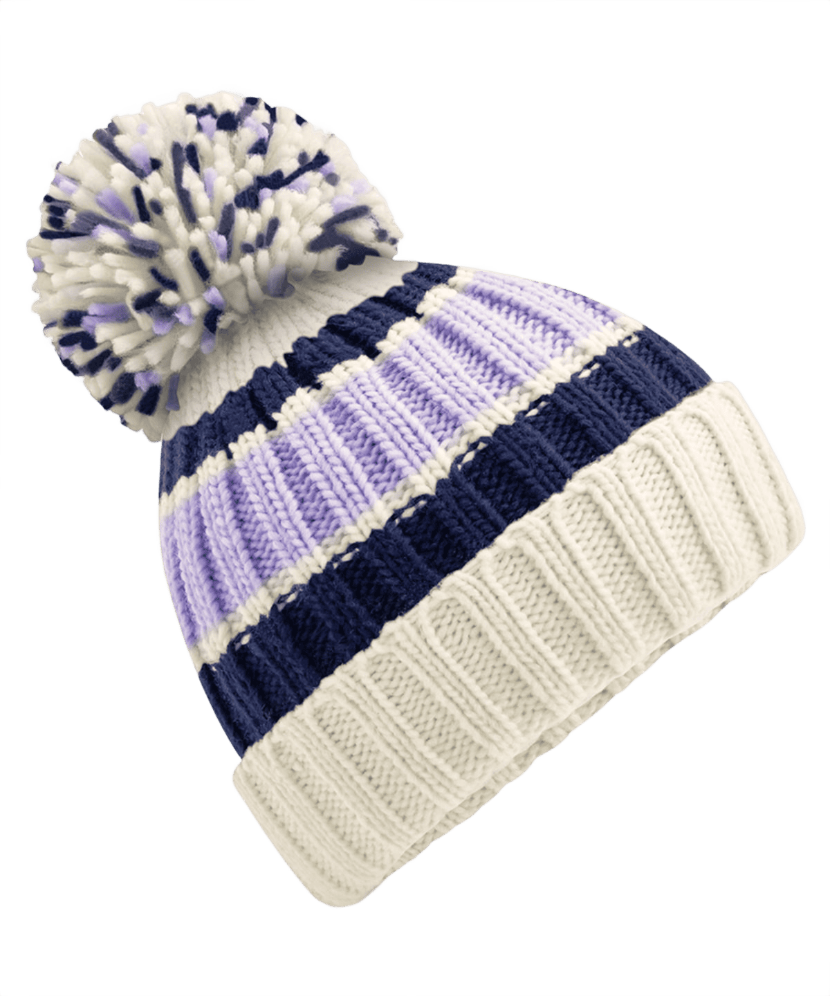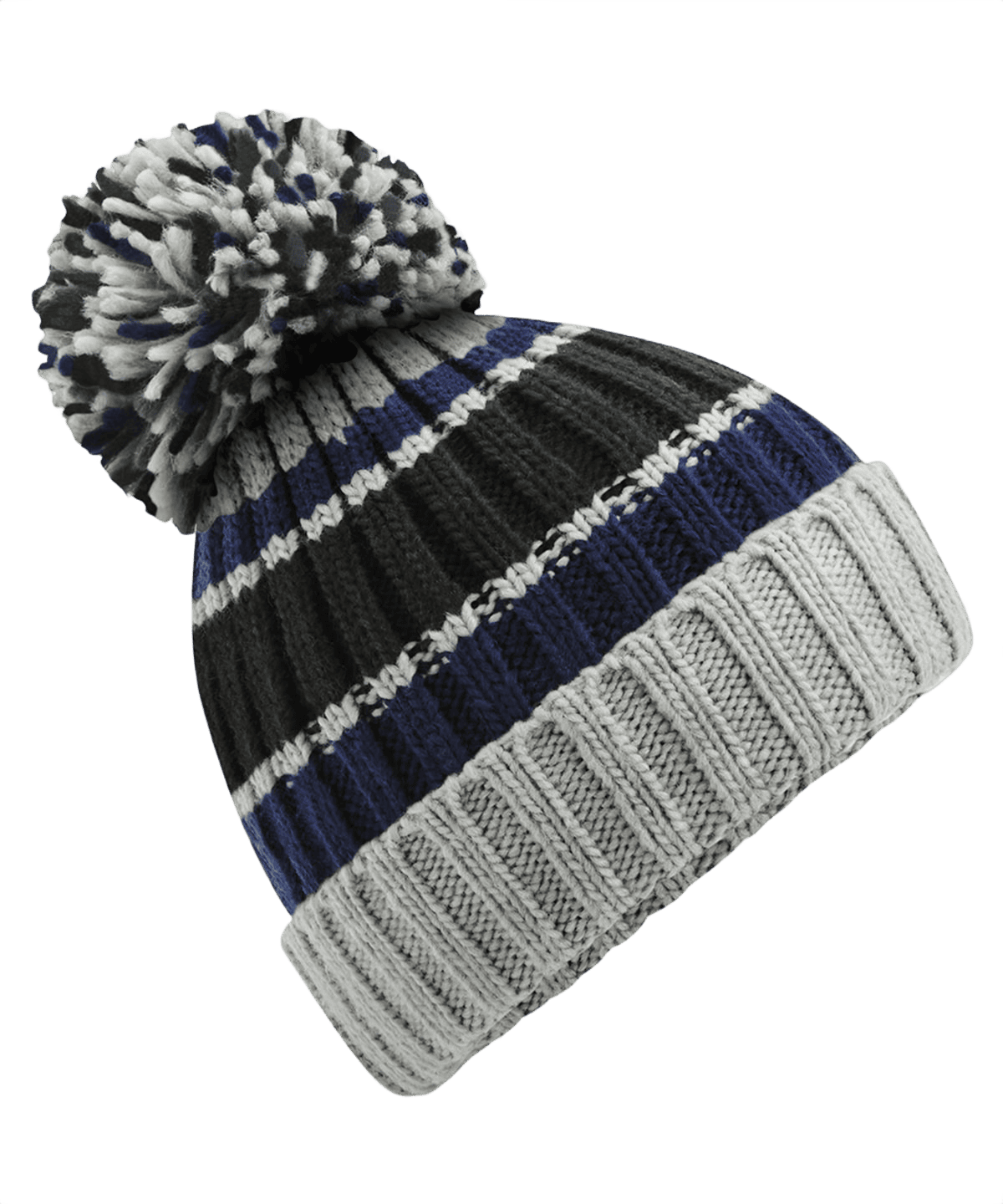 Stickad Ribbad Mössa Med Pom Pom