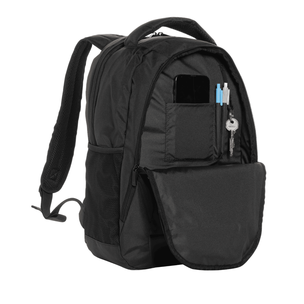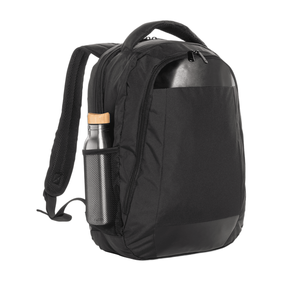En tidlös datorryggsäck för yrkespersoner på språng. Har ett säkert vadderat fack för 15,6" bärbara datorer och ytterligare blixtlåsförvaring. Tillverkad av återvunnen polyester och innehåller AWARE™ spårämne för äkthet. Åtagit sig att hjälpa miljön med 2% av intäkterna som stödjer Water.org. Designen är PVC-fri för säkerhet. Anpassa med ditt företags identitet för en unik touch.