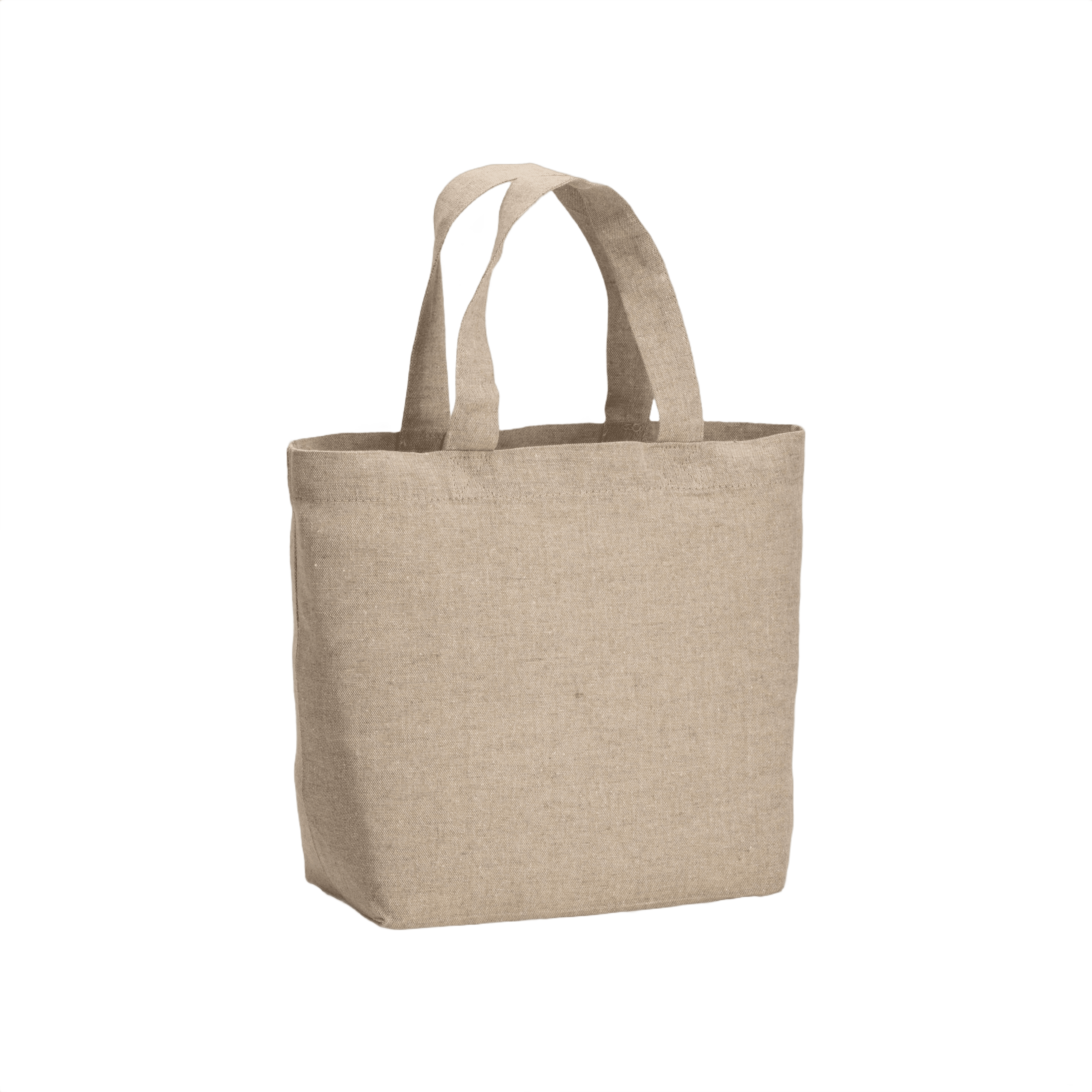 En återvinningsbar bomullshopper designad för miljömedveten shopping. Konstruerad av 150 g/m2 återvunnet bomull, inkluderar den korta handtag och ett rymligt inre med en kil på 23x10 cm. Denna väska förenar hållbarhet med stil, idealisk för att bära dagliga artiklar. Lägg till din branding för ett personligt miljöuttryck.
